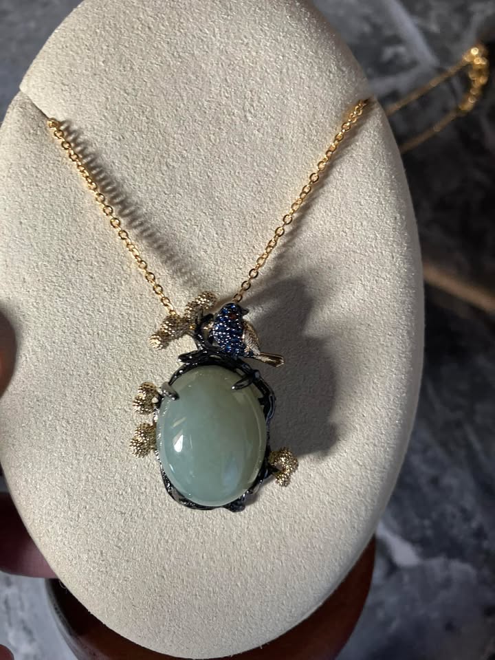 The pendant is paired with a FREE S925 gold necklace, adding both value and elegance. The warm gold tone enhances the jadeite’s soothing green hue, creating a piece that feels both regal and grounding—perfect for everyday wear or special occasions.