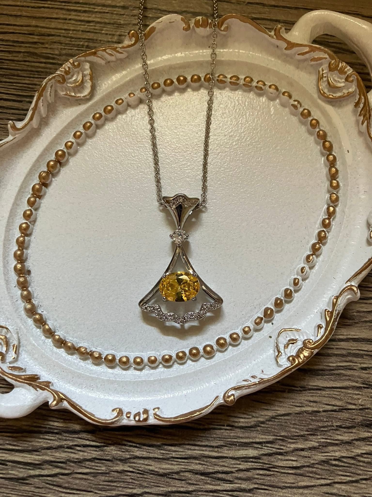 Radiating the golden energy of the Sun, the Citrine Fan Necklace is a symbol of wealth, confidence, and divine light.